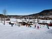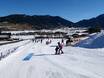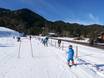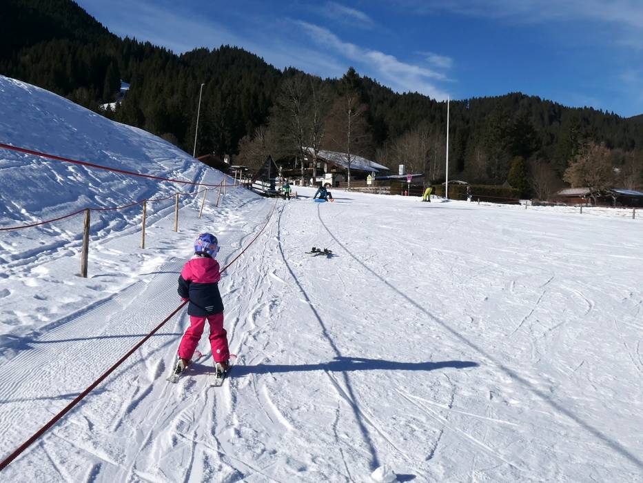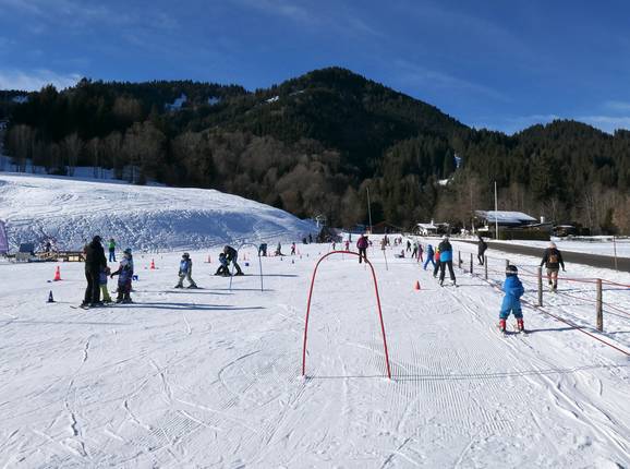 Directement à la station de la vallée s'étend le vaste domaine débutant, entièrement relié. Deux téléskis à corde facilitent l'accès : il suffit de se tenir à la corde pour être tiré doucement vers le haut de la pente. Ensuite, les enfants peuvent développer progressivement leurs compétences sur trois téléskis à assiette, dont la difficulté augmente petit à petit.