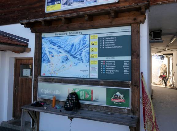 Le plan des pistes sur le panneau d'information représente très bien le domaine skiable. Il n'y a pas de plans des pistes à emporter.