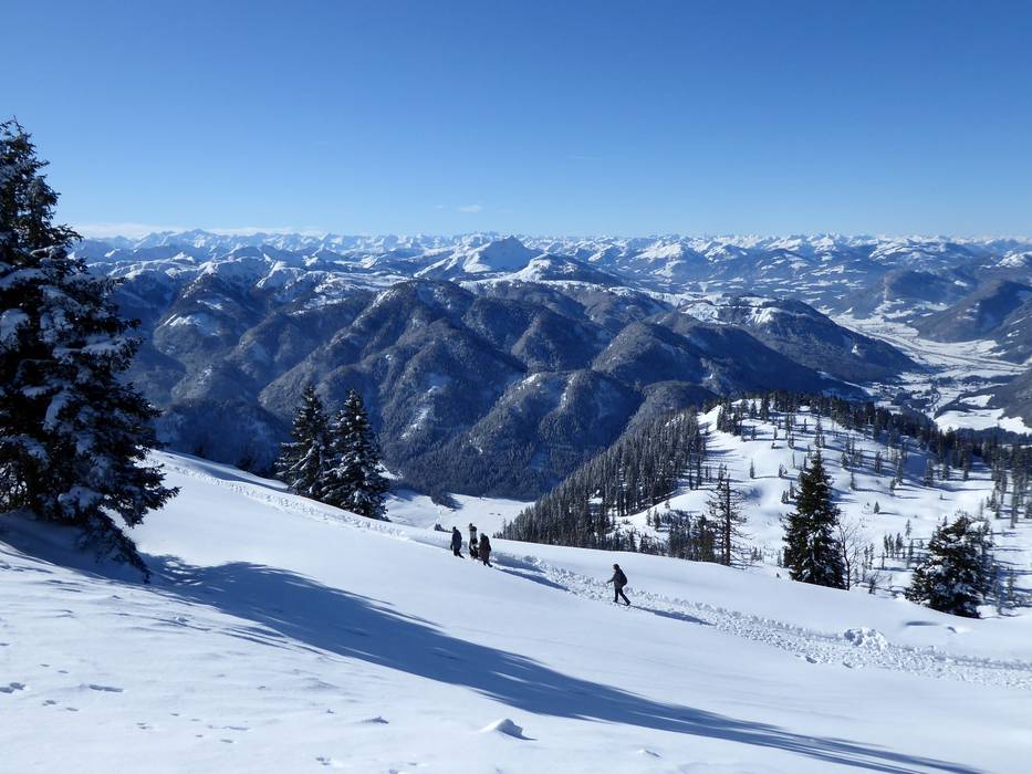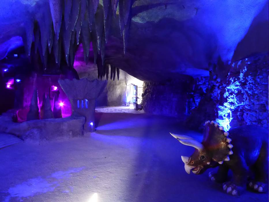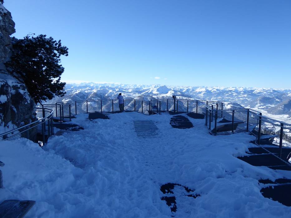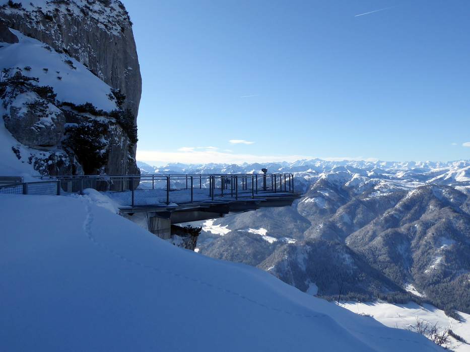 Le sentier de randonnée hivernale menant à la plate-forme panoramique et à la grotte de stalactites est une expérience pour toute la famille. Il commence à la station supérieure de la télécabine Waidring-Steinplatte dans le Triassic Park.