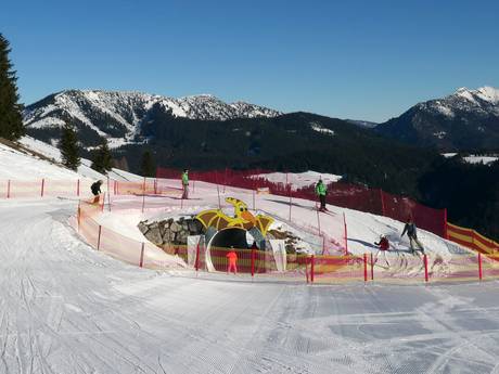 Les familles qui recherchent des pistes faciles se sentent très à l’aise sur la Winklmoosalm. On y trouve de nombreuses descentes simples et larges, et les enfants peuvent être transportés au choix par téléski à corde, téléski ou télésiège. Sur la Steinplatte, il y a également de nombreuses pistes faciles avec la possibilité de passer à des pistes plus raides. Le Triassi Kinderland se trouve dans la vallée, dans la localité de Waidring. Cependant, le terrain de l’école de ski n’est pas relié aux pistes du domaine skiable Steinplatte/Winklmoosalm.