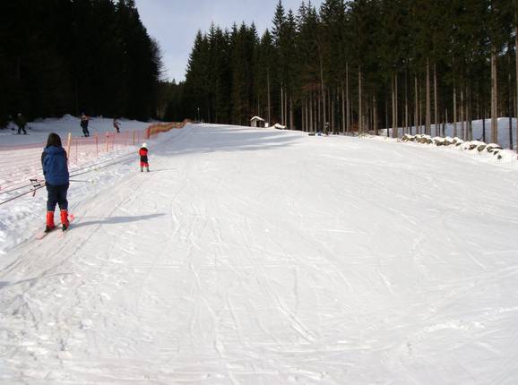 À la station de la vallée, il y a un espace spécialement aménagé pour les débutants avec un tapis roulant et un téléski à corde. La piste familiale est un peu plus raide dans sa partie supérieure, mais elle reste facilement praticable pour les débutants un peu plus avancés.