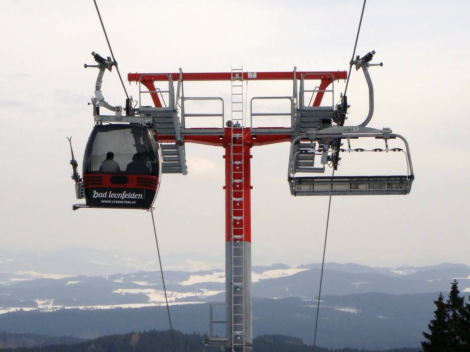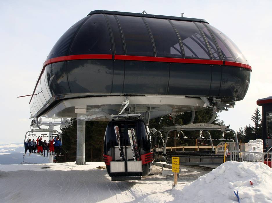 Téléphérique monocâble composé de sièges à 6 places et de cabines à 8 places