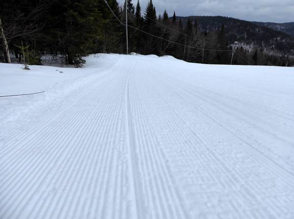 Dans le domaine skiable de Stoneham, presque toutes les pistes sont préparées chaque jour avec beaucoup d’attention aux détails. Seules les descentes en forêt déboisée (Gladed Runs) ne peuvent pas être préparées.