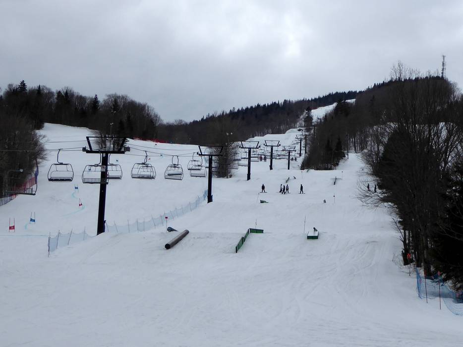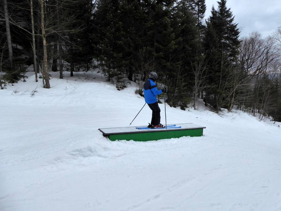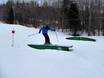 Le snowpark se trouve dans la partie inférieure du domaine skiable de Stoneham, sur la piste La Rock’n’Roll. Il est idéal pour les débutants et les enfants.