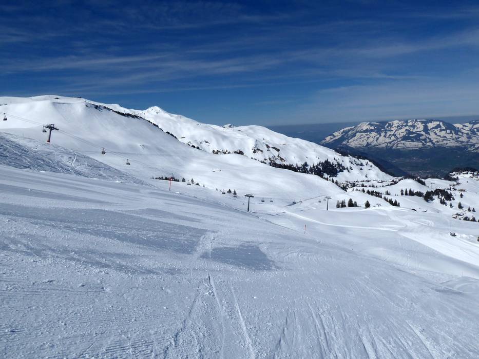 Vue depuis le Fronalpstock sur le lac des… Piste Franz Heinzer au Klingenstock La croix du sommet au Fronalpstock Des pistes larges au Fronalpstock avec vue sur…