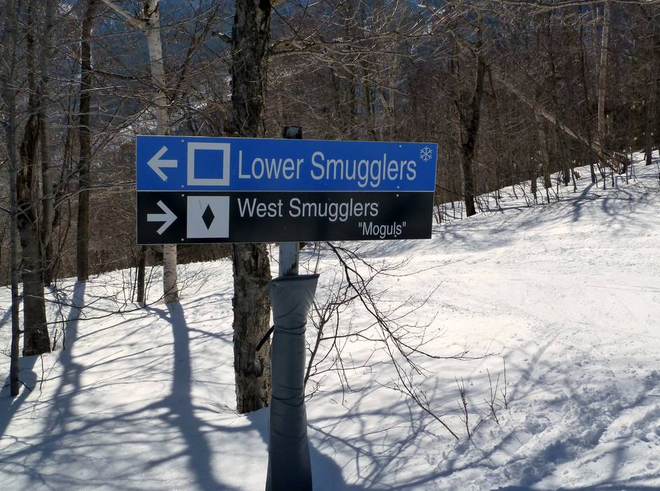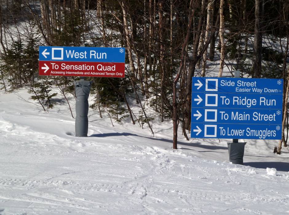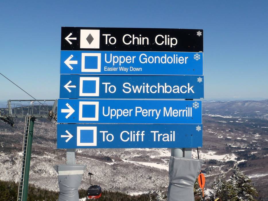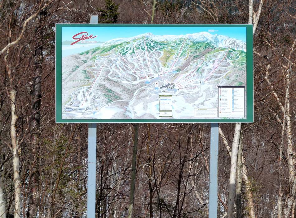 Indications de directions (plans, panneaux informatifs, signalisation) et sécurité sur le domaine skiable Stowe