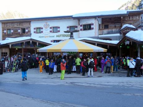 Un premier point de rencontre directement dans le domaine skiable est le Pavillon Schneekristall près de la station supérieure Gamsgarten. À la station de la vallée, on fait la fête sous le parasol d'après-ski de l'Alpensporthotel Mutterberg.