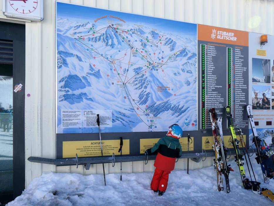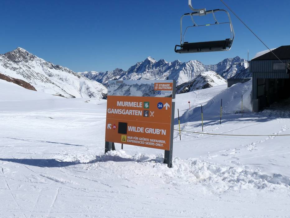 Indications de directions (plans, panneaux informatifs, signalisation) et sécurité sur le domaine skiable Stubaier Gletscher (Glacier de Stubai)