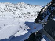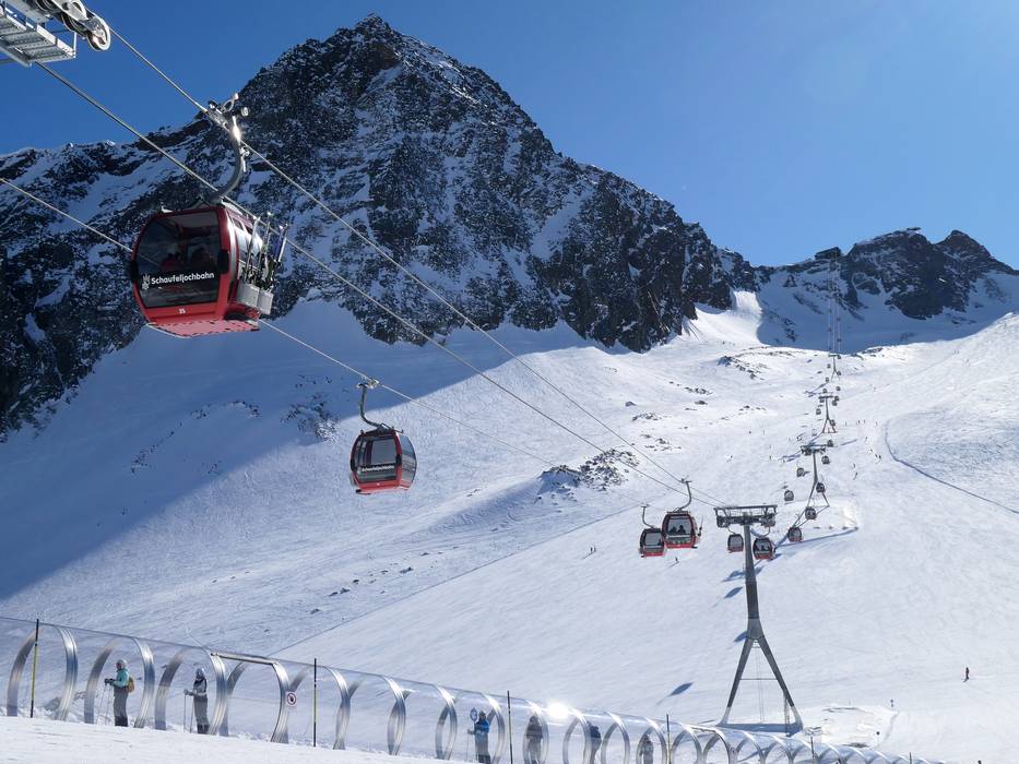 La télécabine 8 places Schaufeljochbahn est la première télécabine construite sur de la glace de glacier.