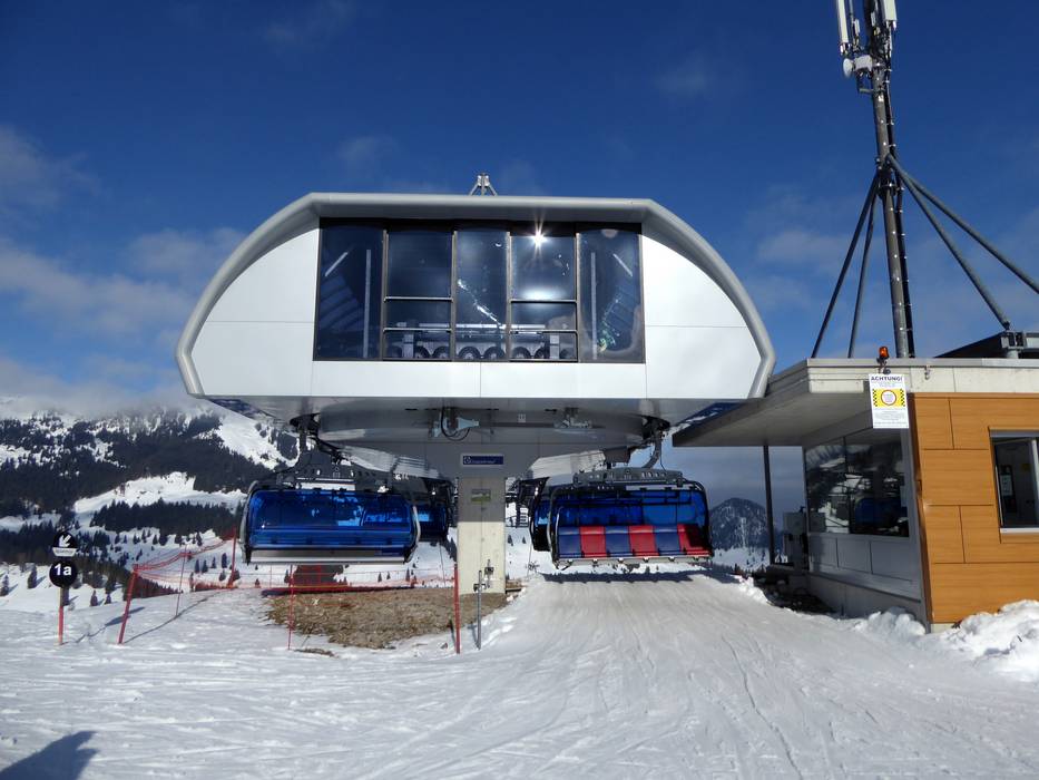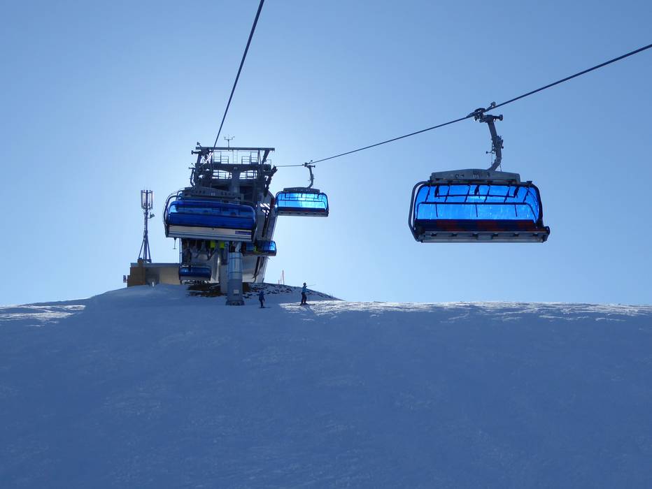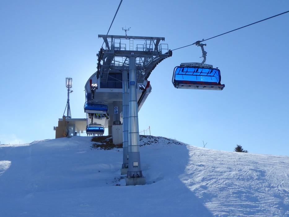 Le télésiège 6 places Waldkopf est équipé d'une sécurité enfant, de sièges chauffants et de bulles de protection bleues contre les intempéries.