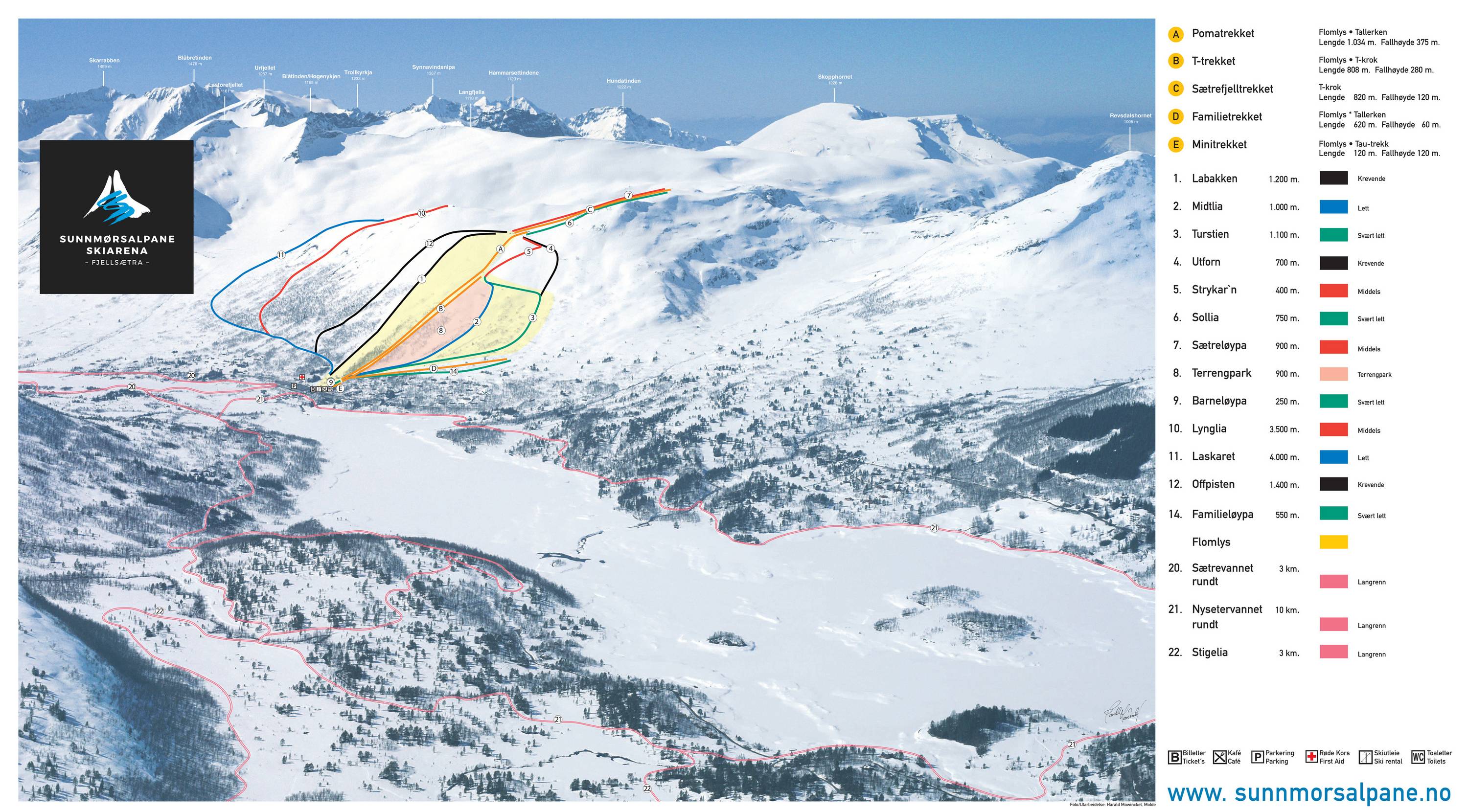 Plan des pistes Sunnmørsalpane Skiarena Fjellseter Saison 2024/2025