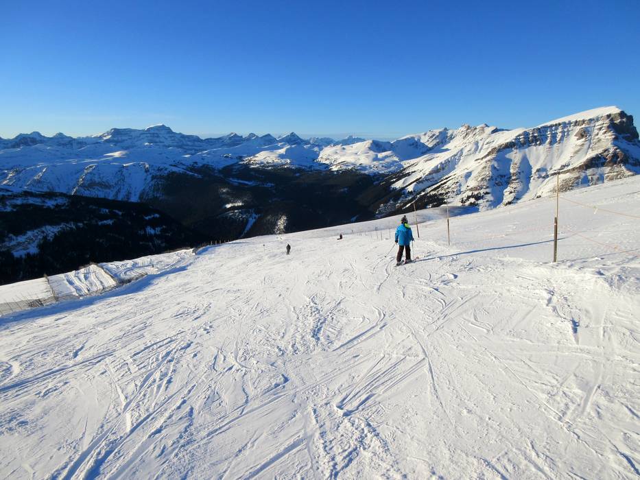 La plus longue descente part du Lookout Mountain, emprunte la piste facile n° 34 Green Run jusqu’au Sunshine Village, puis continue sur la piste facile n° 1 Banff Avenue jusqu’à la station de la vallée. Il est possible de prendre le télésiège quatre places Jackrabbit pour remonter un court tronçon et ainsi éviter une longue section de chemin plat.