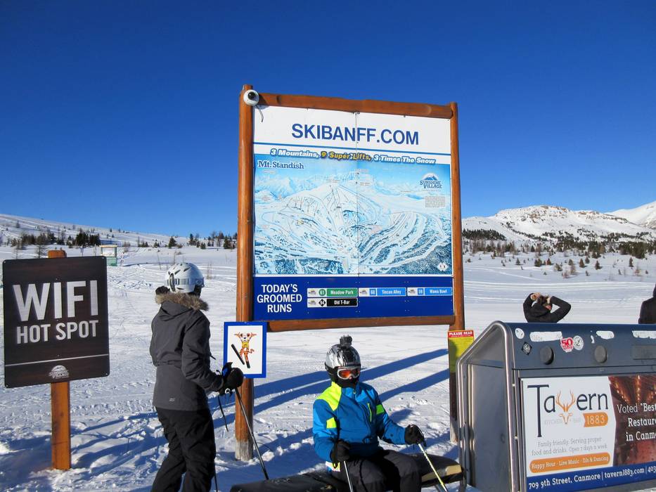 Indications de directions (plans, panneaux informatifs, signalisation) et sécurité sur le domaine skiable Banff Sunshine