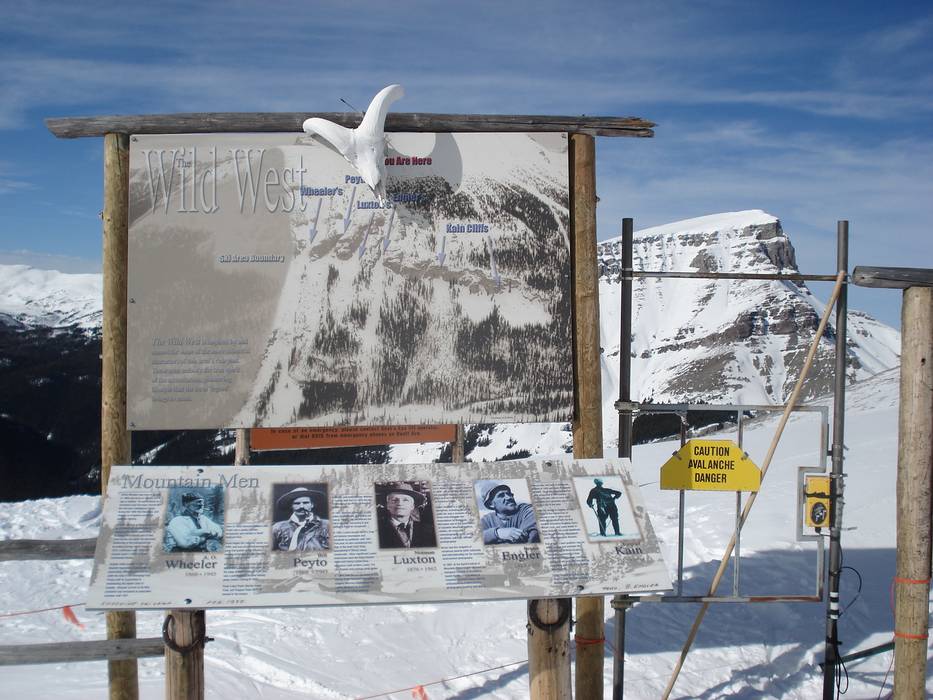 The Wildwest & Delirium Dive · Longueur 0,8 km · Dénivelé 500 m Les zones The Wildwest et Delirium Dive sont des descentes extrêmement difficiles à travers des couloirs rocheux et des falaises. Il est obligatoire de s’enregistrer à Scurfield Point ou Lookout Mountain et de ne skier qu’avec un casque et un détecteur de victimes d’avalanches.