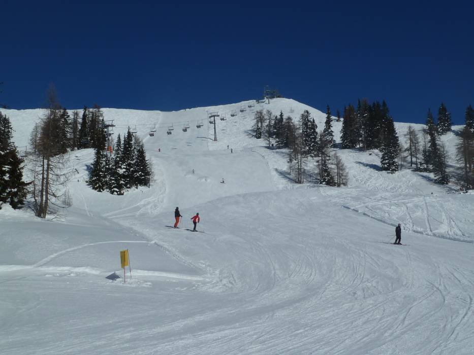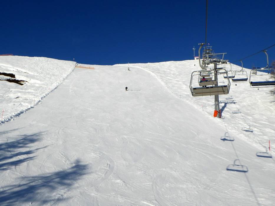 La piste longe le télésiège Mittersteinbahn (2e section) et descend abruptement vers la vallée.