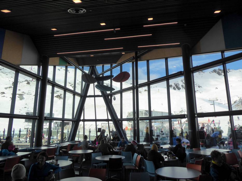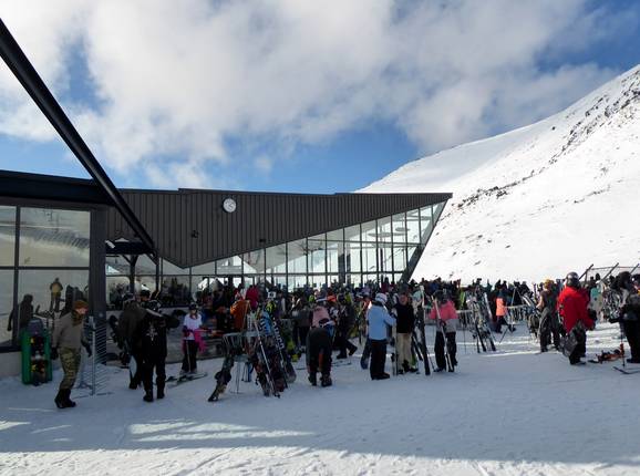 Dans le domaine skiable The Remarkables, vous pouvez faire une pause dans le grand bâtiment de la station de la vallée. Un restaurant avec terrasse ensoleillée et un café vous y attendent. En haut du domaine skiable, par beau temps, il y a l'Ice Bar.
