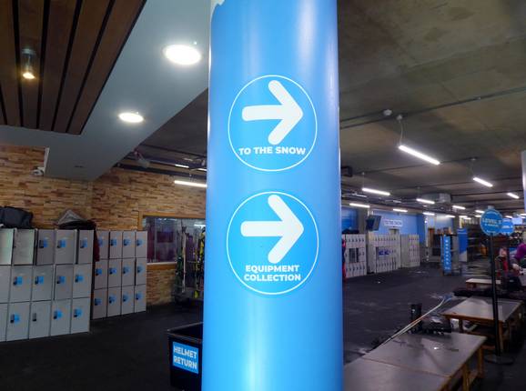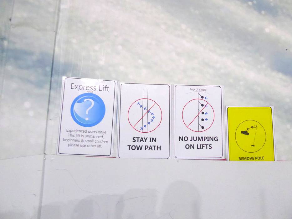 On trouve quelques panneaux d'information dans la zone de vestiaires du hall de ski. En général, il y a peu de signalisation sur les pistes. Cependant, en raison de la taille du hall de ski, il est facile de s'orienter.