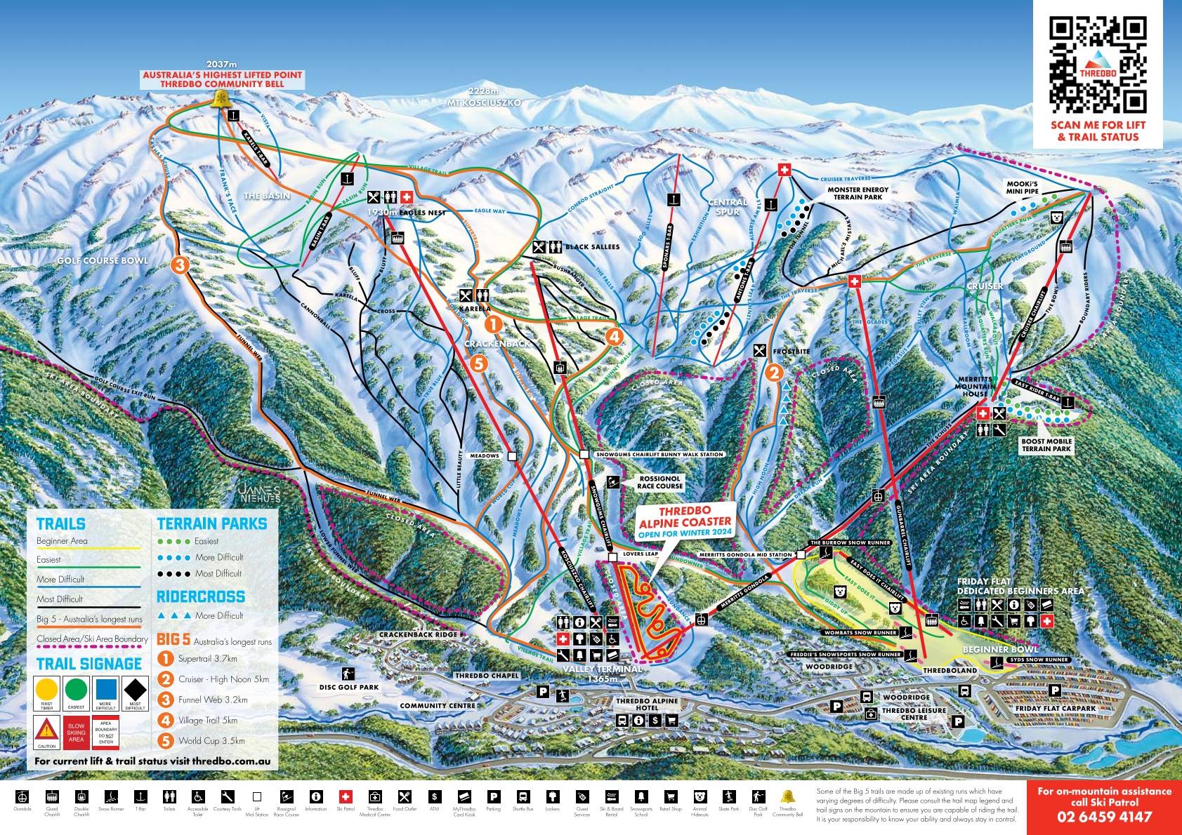 Thredbo (0,5 km), Jindabyne (35 km) Communes près du domaine skiable