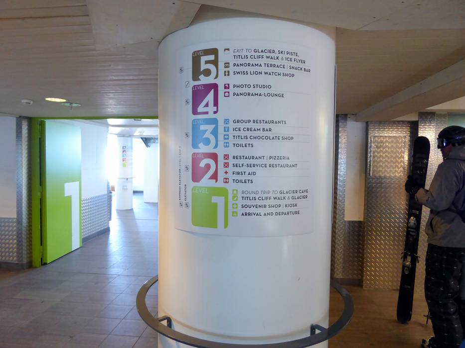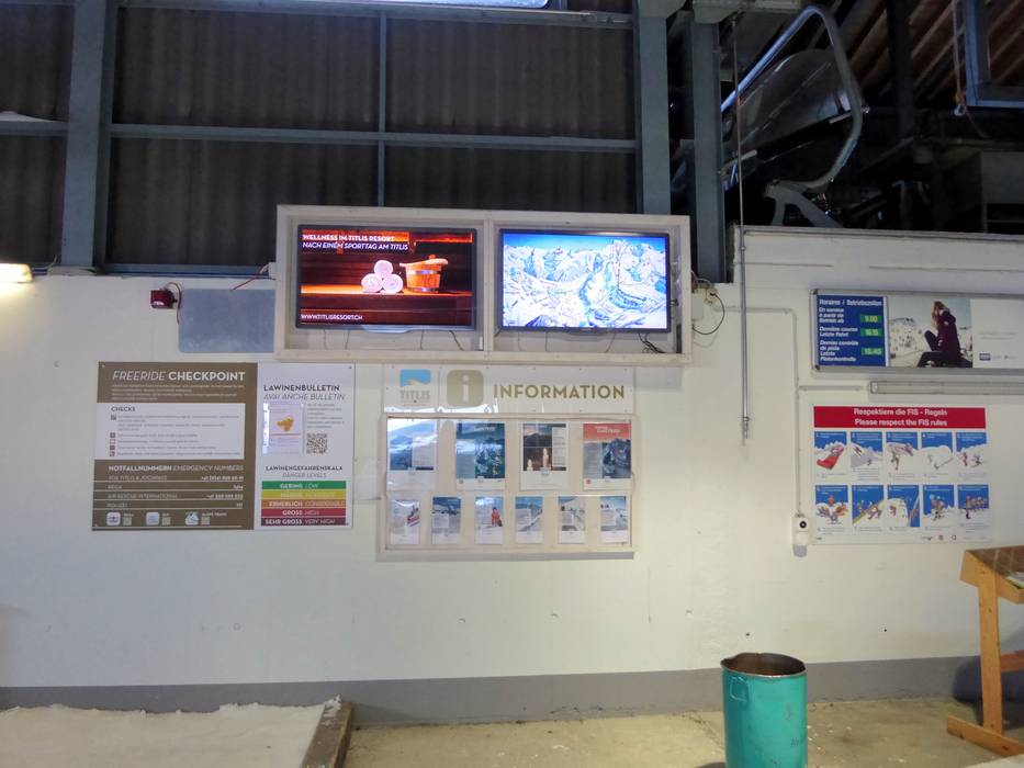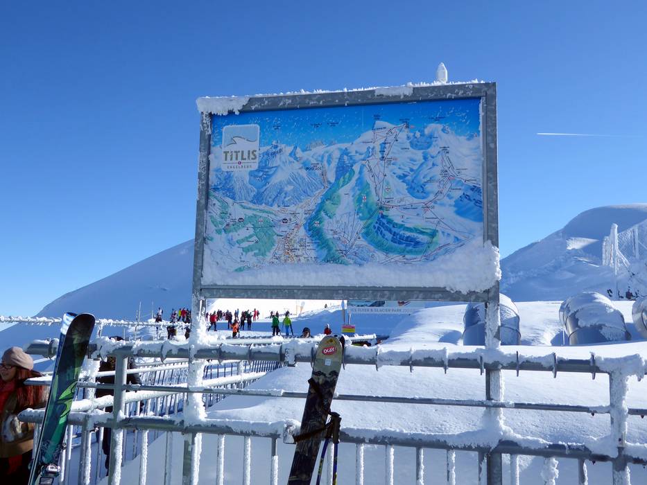 Indications de directions (plans, panneaux informatifs, signalisation) et sécurité sur le domaine skiable Titlis – Engelberg