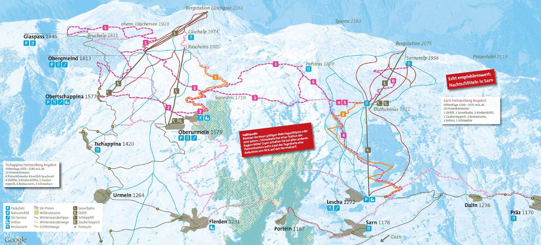 Plan des pistes Tschappina/Urmein (Heinzenberg) Saison 2024/2025