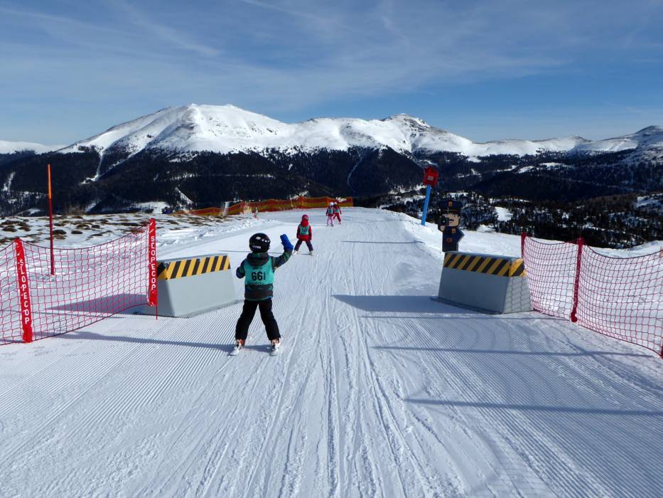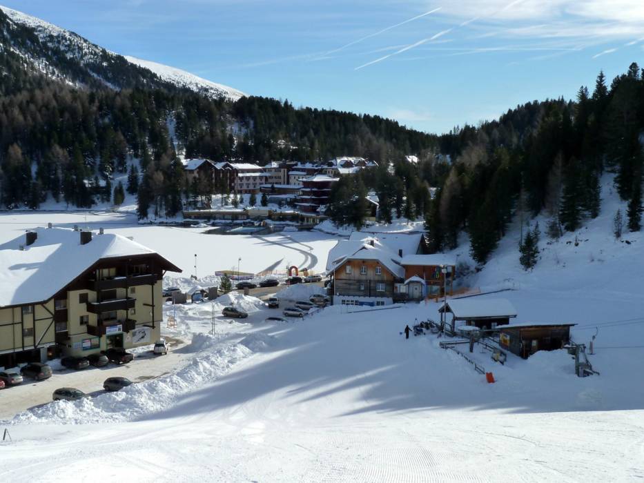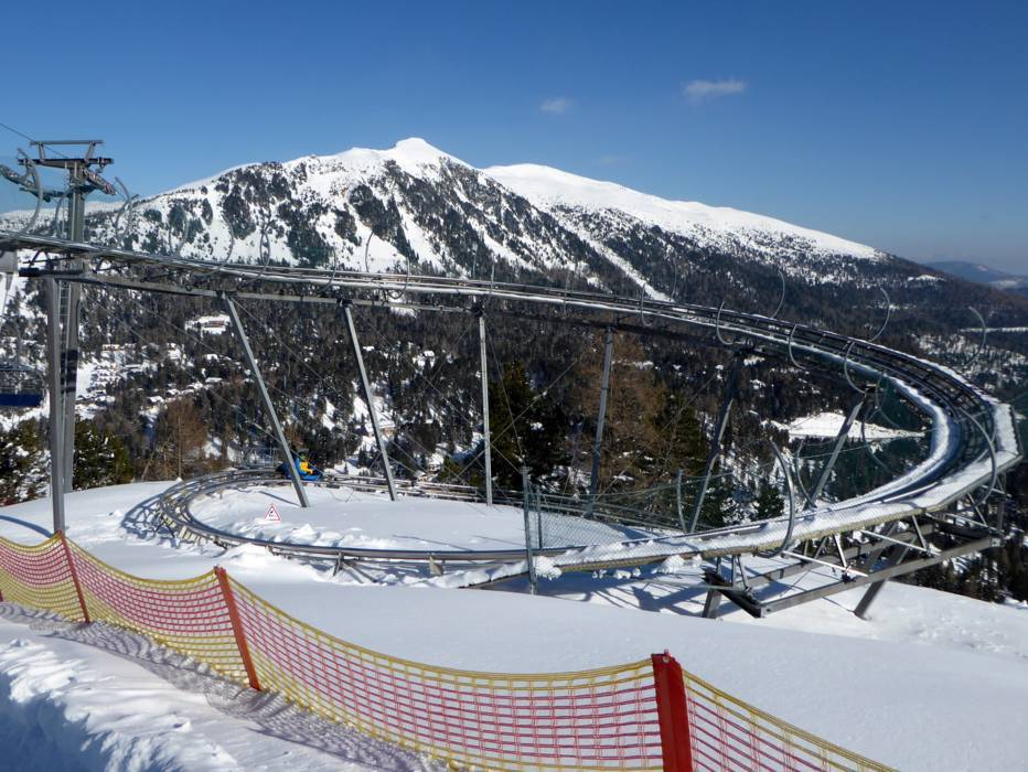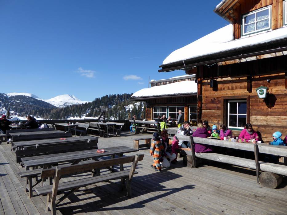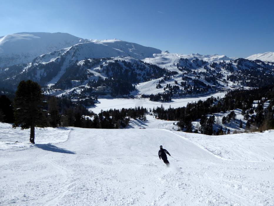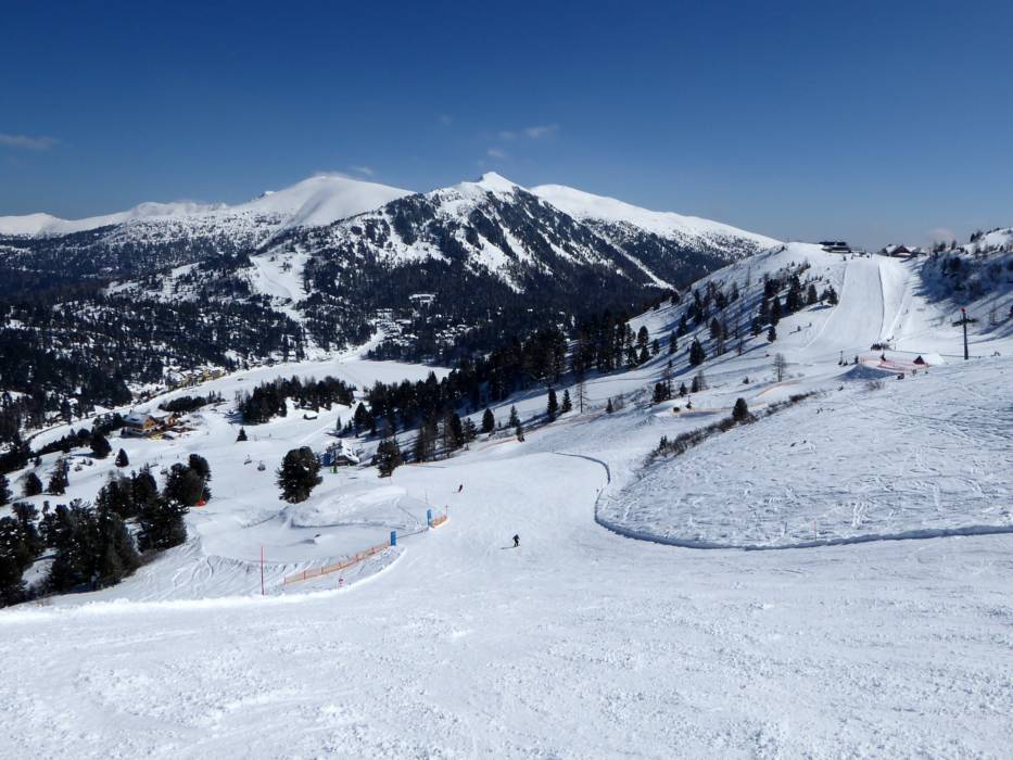 Turracher Höhe est situé à 1763 m d'altitude, à la frontière de la Styrie et de la Carinthie. Les remontées mécaniques autour du lac transportent les visiteurs vers les montagnes environnantes. Le « majordome des pistes de Turrach » (Turracher Pistenbutler) est l'un des points forts des Lire la suiteTurracher Höhe est situé à 1763 m d'altitude, à la frontière de la Styrie et de la Carinthie. Les remontées mécaniques autour du lac transportent les visiteurs vers les montagnes environnantes. Le « majordome des pistes de Turrach » (Turracher Pistenbutler) est l'un des points forts des services proposés. Presque tous les jours, il se balade sur le domaine skiable pour offrir gratuitement du vin mousseux, le prosecco. On peut le déguster tout en étant allongé sur les chaises gratuites du domaine skiable. Souvent, des friandises sont distribués aux enfants.