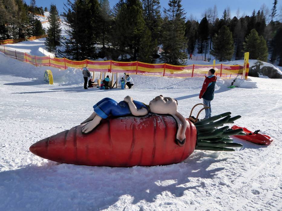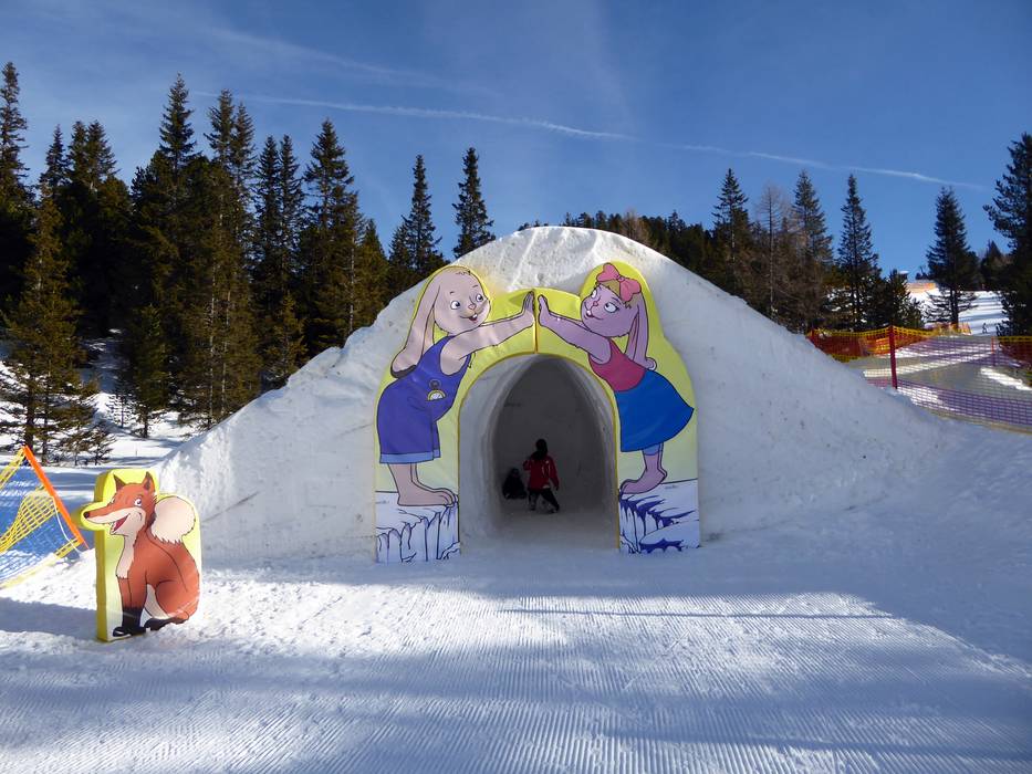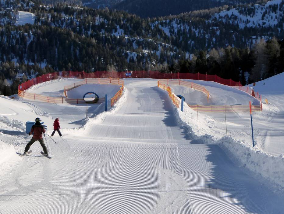 Sur la Kidsslope au téléski Wildkopf, les enfants s'amusent beaucoup. Accompagnés d’animaux, ils traversent un tunnel de neige, des virages relevés et des vagues.