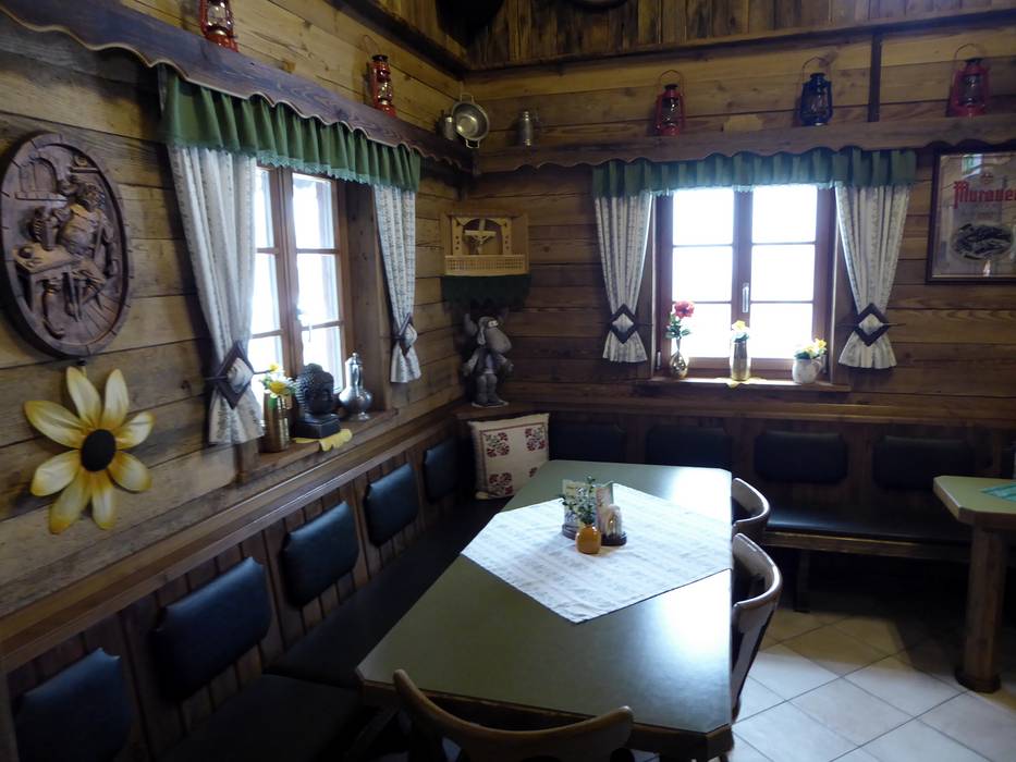 La cabane est aménagée de façon chaleureuse et rustique avec du bois provenant en partie d’anciennes maisons en bois. L’équipe de la cabane régale les hôtes avec des soupes fraîchement préparées, des spécialités régionales servies dans le plat, de délicieuses assiettes de charcuterie, des strudels fruités et du Kaiserschmarrn. On y savoure également de délicieux jus, d’excellents thés, du café italien et des vins de vignerons autrichiens.