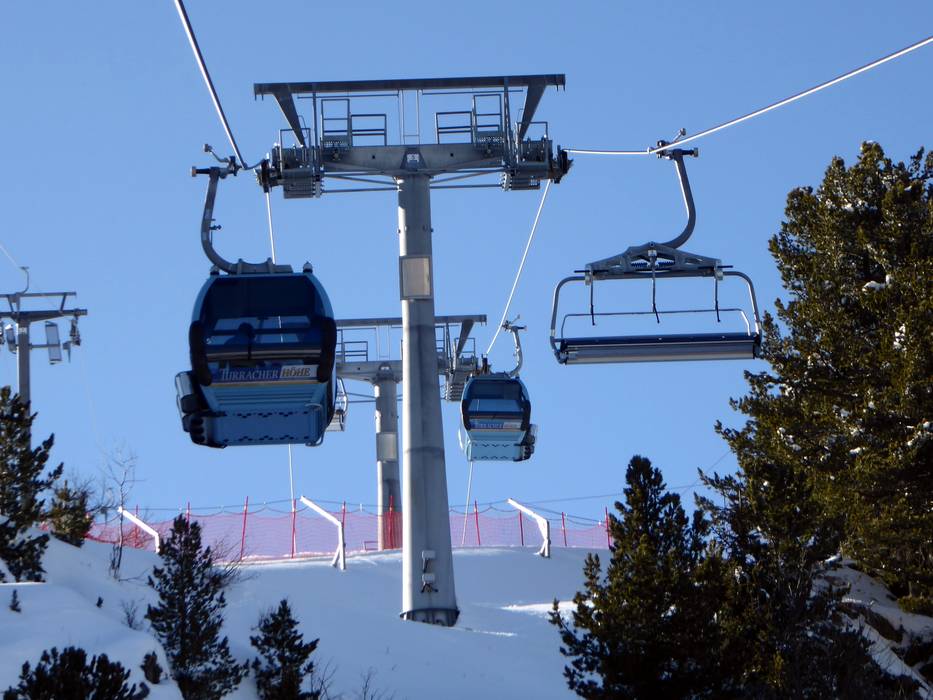 Téléphérique monocâble composé de sièges à 6 places et de cabines à 8 places