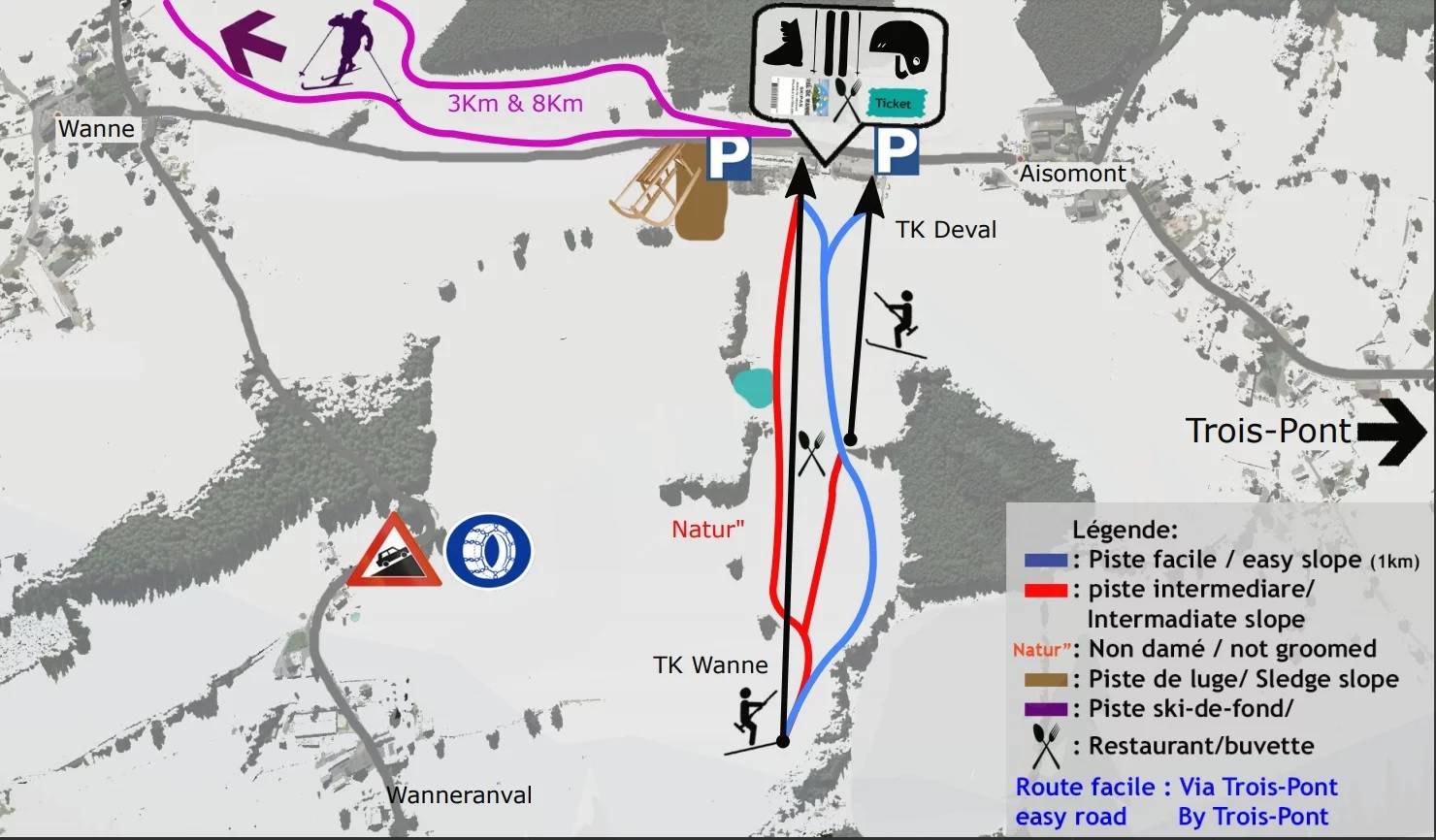 Aisomont (0,3 km), Wanne (1 km), Trois-Ponts (5 km) Communes près du domaine skiable