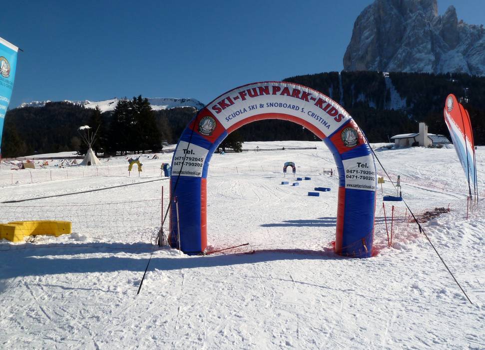 L'école de ski St. Ulrich s'occupe du Kinderland et du Mini Park Floc. Plusieurs tapis roulants, pistes à vagues et figures amusantes sont à la disposition des enfants. Une piste de course et des tipis complètent l'offre.