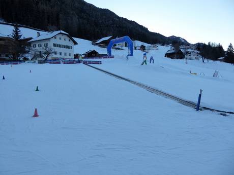 Dans les trois localités (St. Christina/S. Cristina, St. Ulrich/Ortisei, Wolkenstein/Selva Gardena) ainsi qu’au Monte Pana, il existe des parcs pour enfants et des jardins d’enfants de ski. Des téléskis d’apprentissage à côté des zones pour enfants complètent l’offre. Plusieurs funslopes garantissent du plaisir pour toute la famille. Dans les refuges, des menus pour enfants sont proposés. Les écoles de ski de la vallée de Gröden sont particulièrement adaptées aux enfants et ont reçu à ce titre une distinction du gouvernement provincial du Tyrol du Sud. Dès l’âge de 2 ans, les enfants sont pris en charge au Mini Club. Il existe également à Gröden des hôtels spécialement réservés aux familles avec enfants. Ceux-ci proposent des programmes de divertissement spécifiques pour les enfants et disposent de leurs propres moniteurs de ski. De plus, l’hébergement, le forfait de ski, la location de matériel et l’école de ski sont proposés dans un forfait attractif.