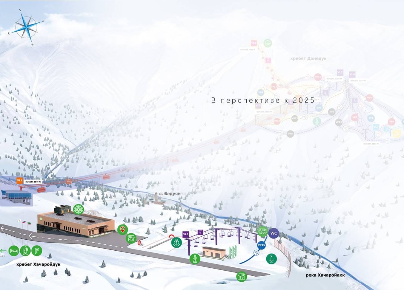 Veduchi (Ведучи) (0,6 km), Itum-Kale (Итум-Кале) (8 km) Communes près du domaine skiable