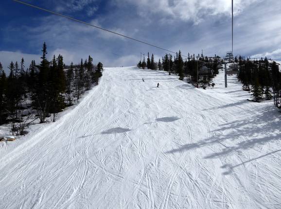 La piste difficile descend très raide vers la vallée sous le Pass Express.