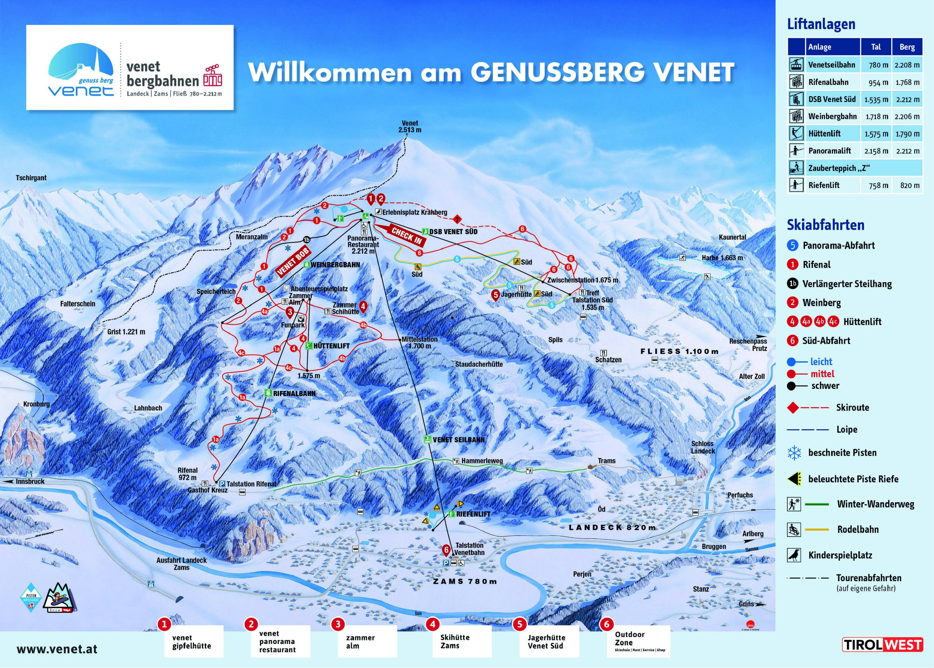 Plan des pistes Venet – Landeck/Zams/Fliess Saison 2019/2020