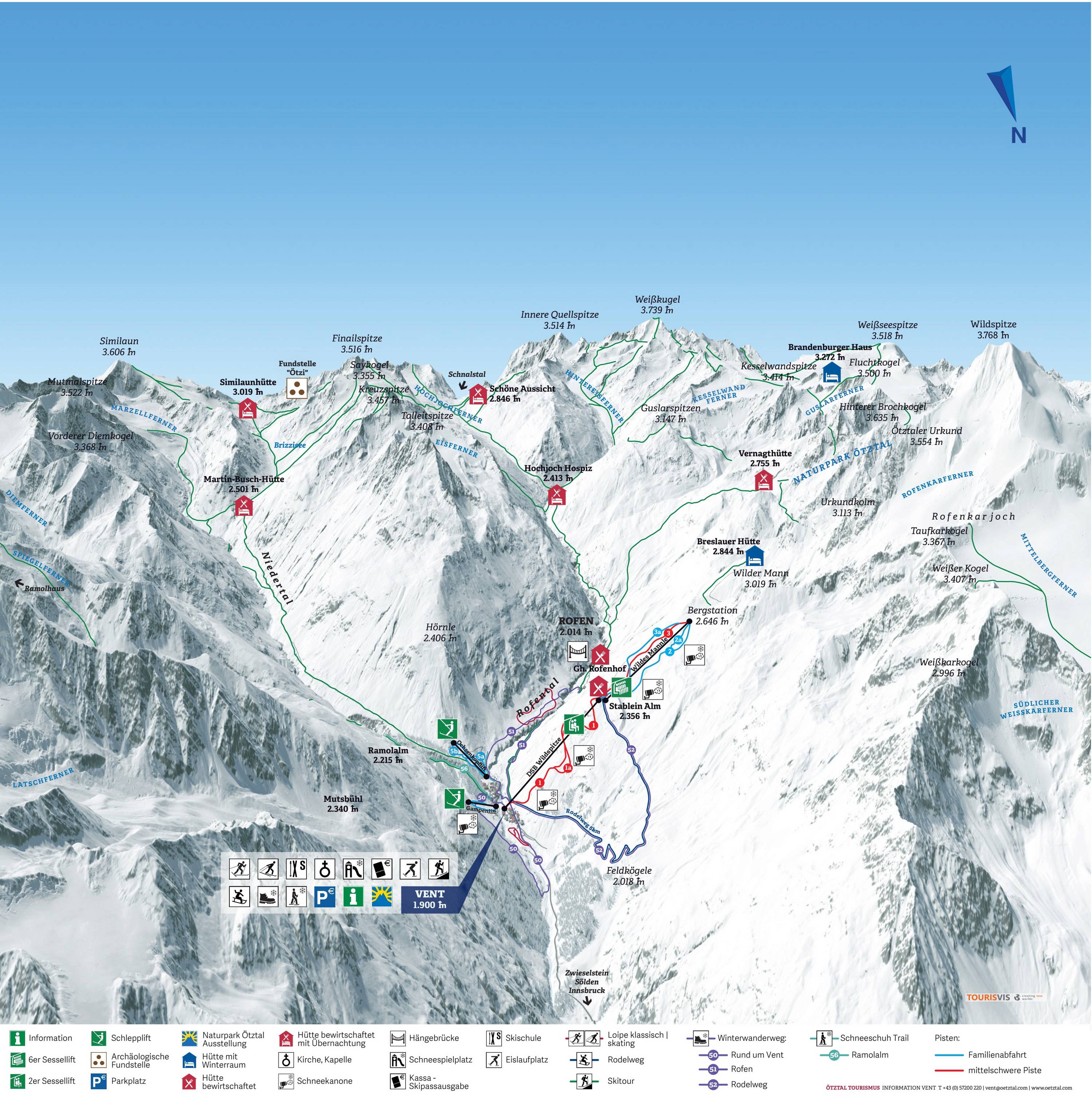 Vent (0,1 km), Winterstall (6 km), Bodenegg (10 km), Zwieselstein (13 km) Communes près du domaine skiable