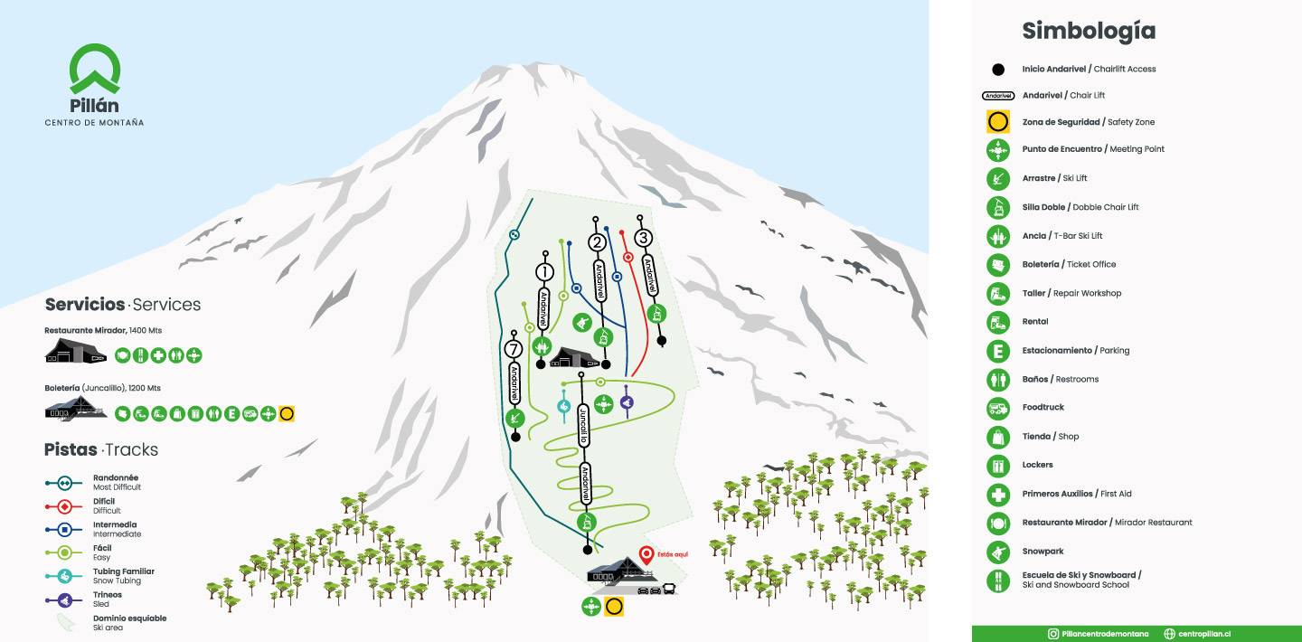 Plan des pistes Pillán - Villarrica Saison 2025