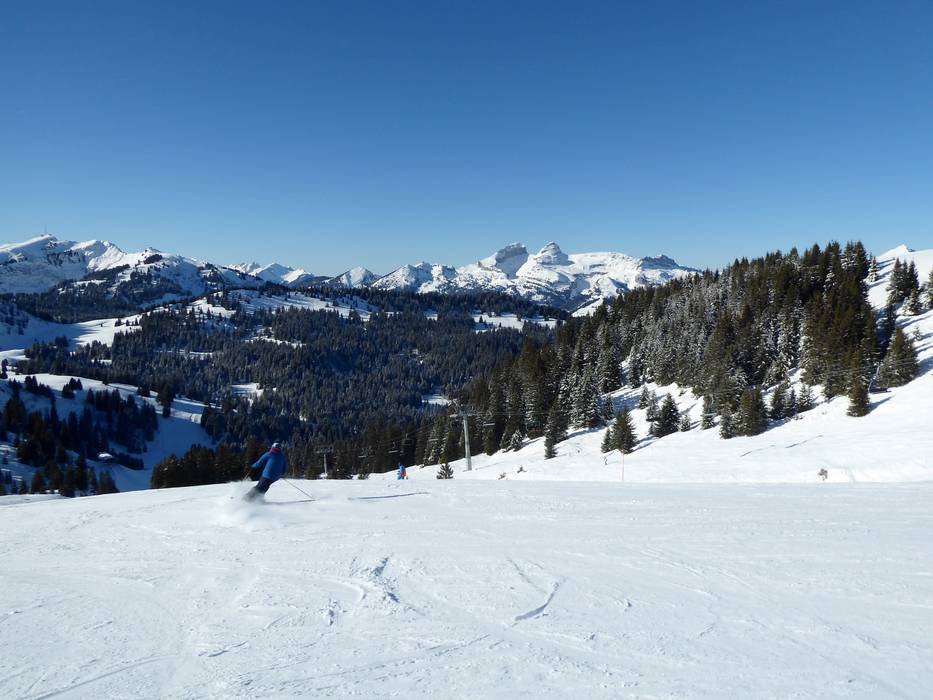 Les pistes sont parfaitement intégrées dans le paysage montagneux et descendent dans la partie inférieure à travers des clairières forestières vers la vallée. Dans la partie supérieure, on se trouve déjà juste au-dessus de la limite des arbres. Les secteurs de ski Les Diablerets et Villars/Gryon sont reliés par un télésiège rapide. Il n’y a pas de pistes ici. On profite toute la journée du magnifique panorama des Alpes suisses.