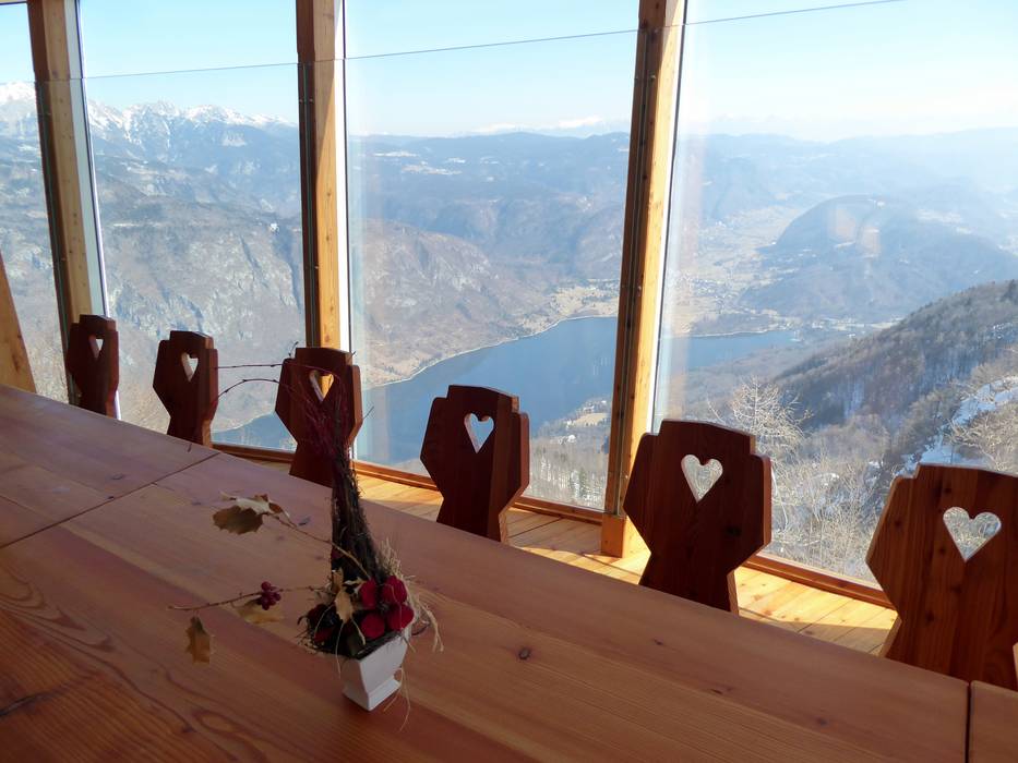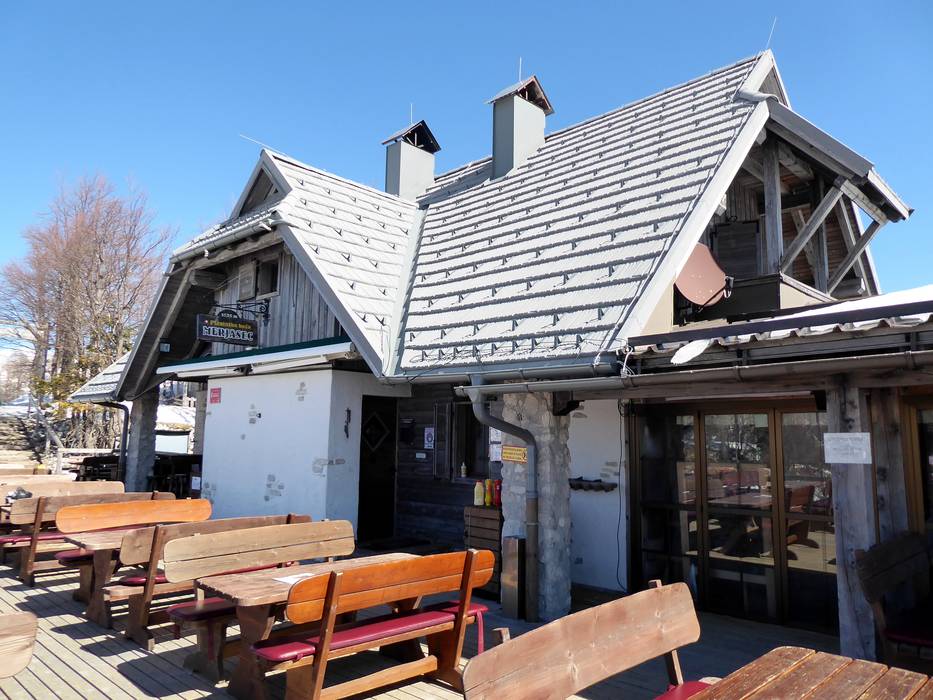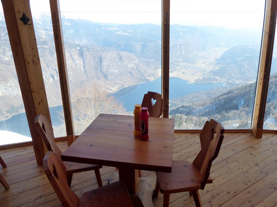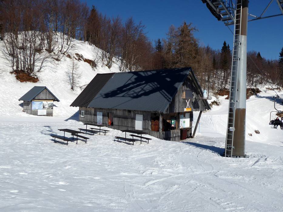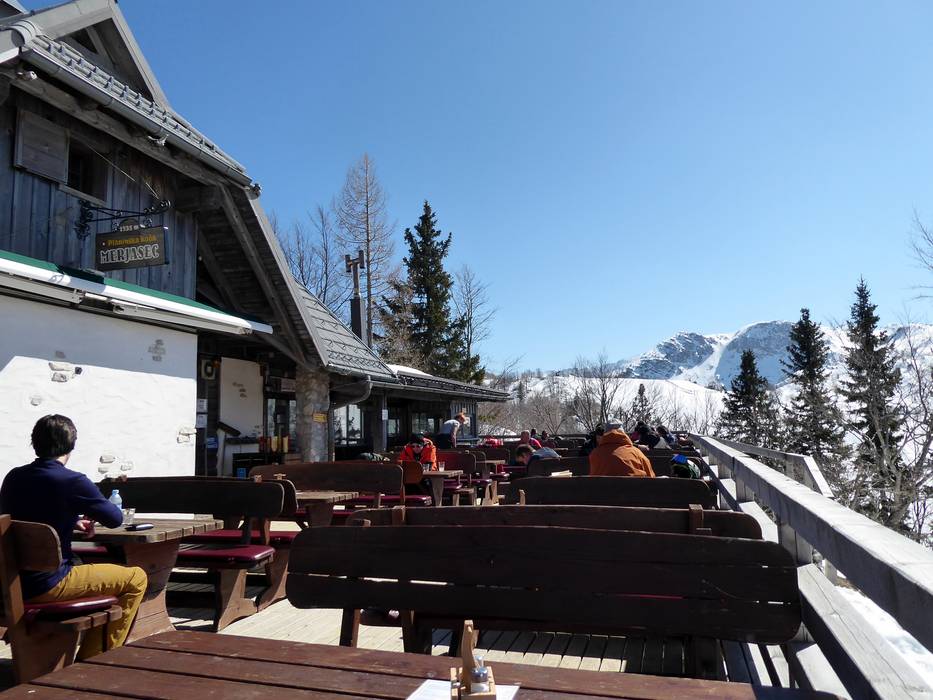 Le refuge le plus haut du domaine skiable de Vogel propose une grande terrasse ensoleillée et des salles rustiques. Des plats slovènes typiques y sont servis.
