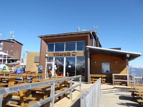 Le restaurant Viharnik abrite le restaurant Galerija et le restaurant Panorama, offrant une vue panoramique à couper le souffle sur le lac de Bohinj. Ici, des éléments de l’ancienne remontée mécanique ont été magnifiquement restaurés et réutilisés. Par beau temps, la terrasse ensoleillée vous invite à la détente.