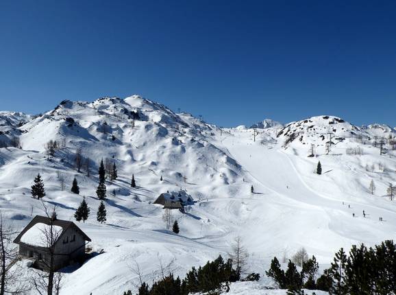 Le domaine skiable de Vogel fait partie des domaines de taille moyenne en Slovénie. La piste Žagarjev graben est la plus longue piste de Slovénie et offre plus de 1200 mètres de dénivelé. En skiant ou en faisant du snowboard, on profite généralement d'une vue magnifique sur le Triglav, qui culmine à 2864 m et est la plus haute montagne de Slovénie.
