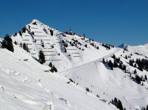 Les remontées mécaniques et les pistes du Walmendingerhorn et du Heuberg relient les versants situés à gauche de la Breitach pour former un domaine skiable. Grâce à leur orientation sud et est, la station de sports d’hiver située au-dessus de Mittelberg et Hirschegg bénéficie d’un