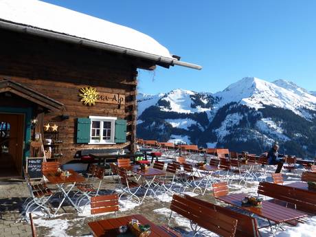 Dans tout le domaine skiable, de nombreux refuges accueillants vous attendent pour une pause. Au Walmendingerhorn, vous trouverez de charmants chalets proposant des spécialités walser. Le restaurant Gipfelstuba offre également des spécialités walser de grande qualité. Faire une halte dans ces chalets authentiques est toujours une expérience inoubliable.