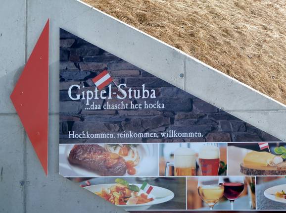 Restaurant avec service et terrasse ensoleillée à la station supérieure, proposant des spécialités variées du Walsertal.