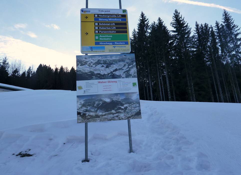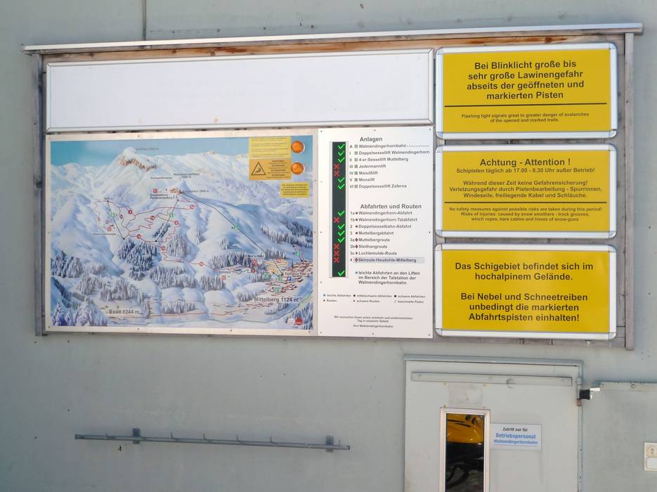 Indications de directions (plans, panneaux informatifs, signalisation) et sécurité sur le domaine skiable Walmendingerhorn/Heuberg – Mittelberg/Hirschegg