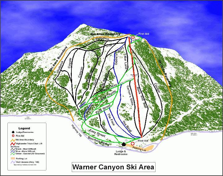 Plan des pistes Warner Canyon Saison 2024/2025