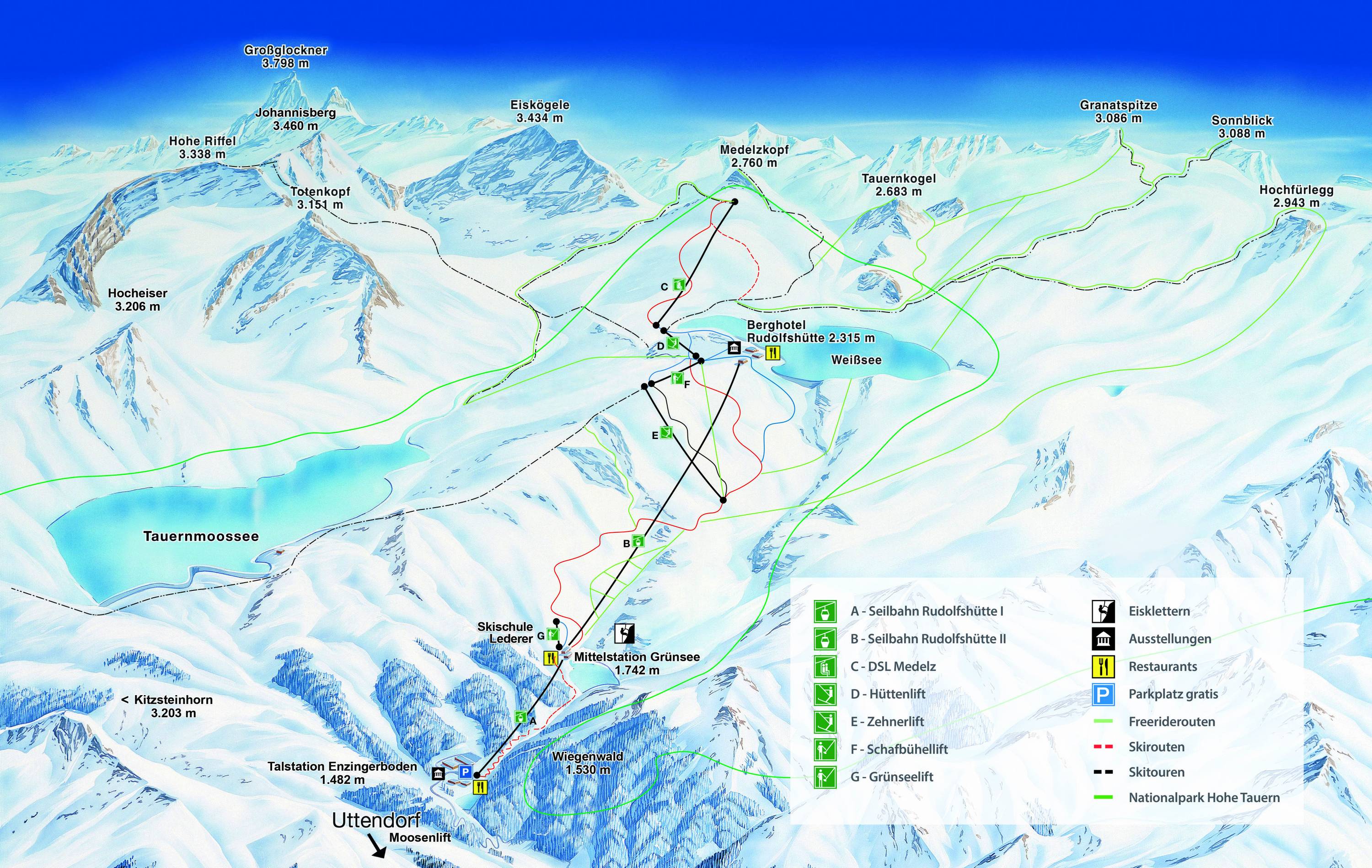 Plan des pistes Weißsee Gletscherwelt – Uttendorf Saison 2025/2026