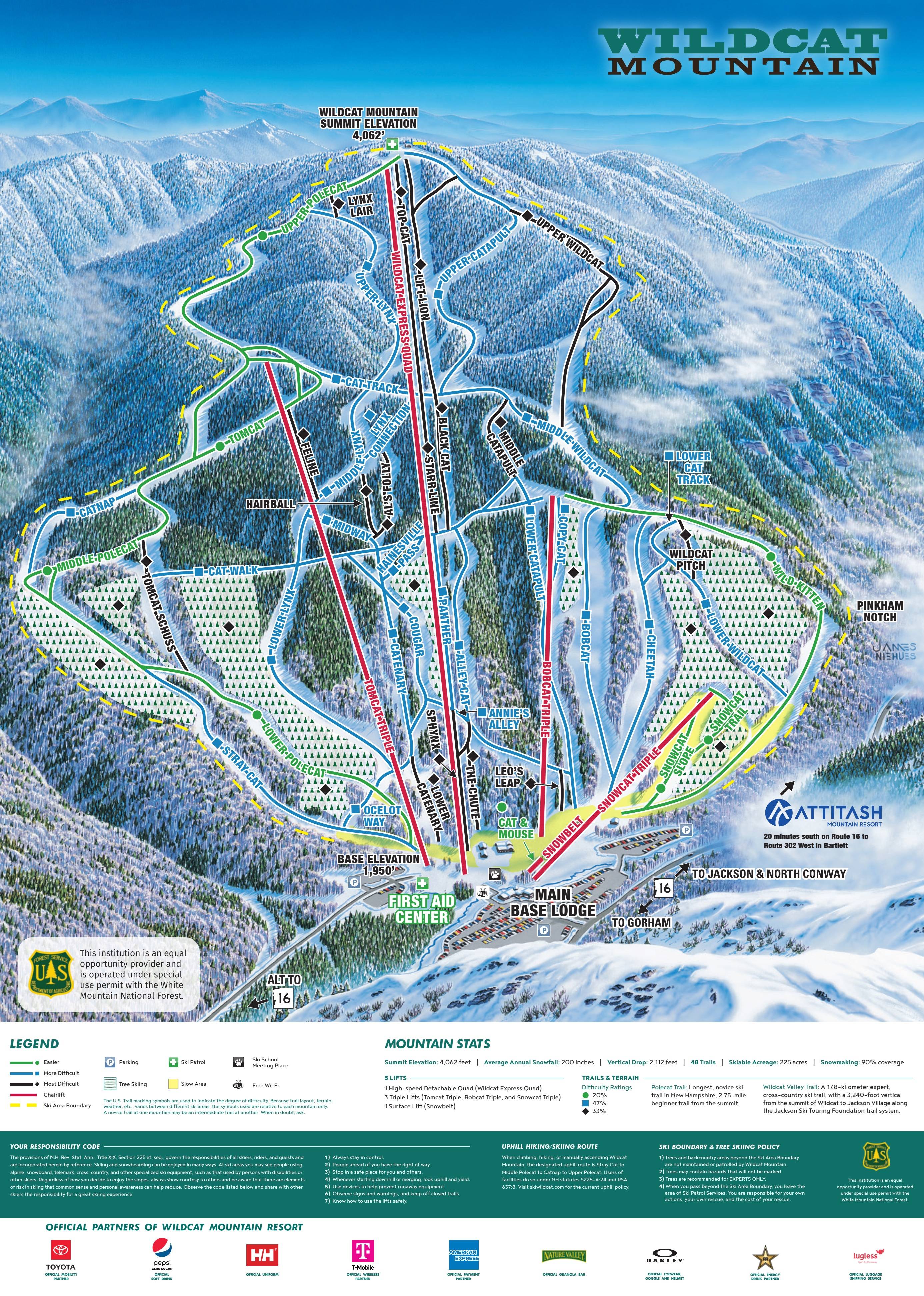Plan des pistes Wildcat Mountain Saison 2024/2025
