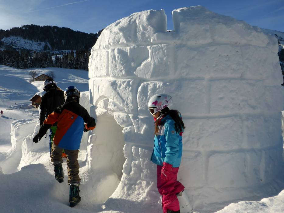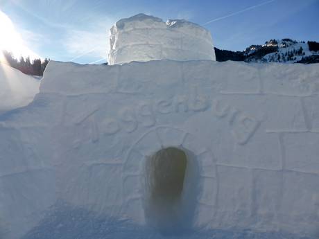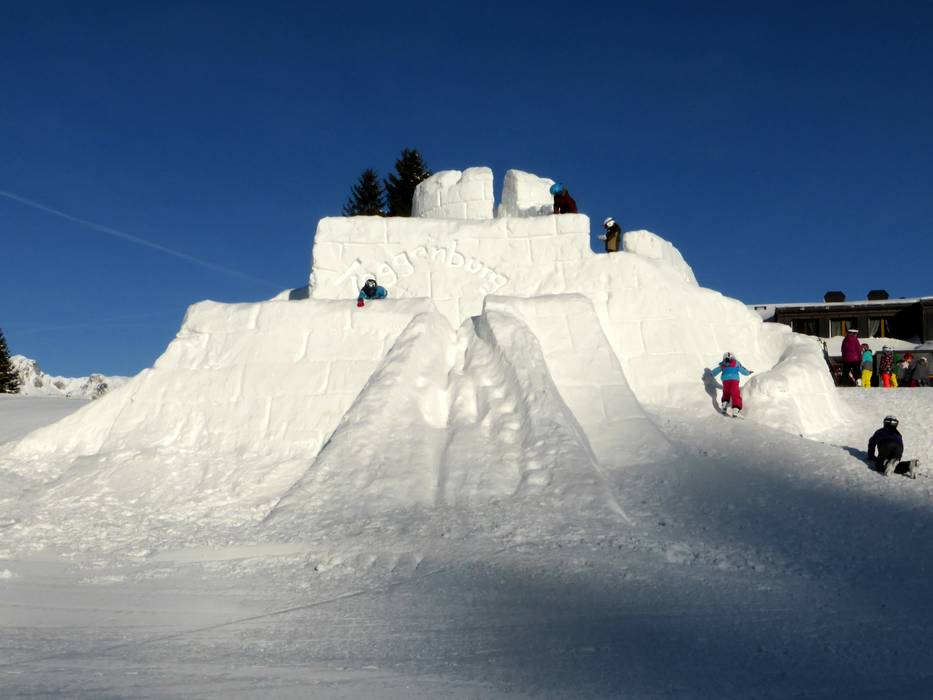 La géante Toggenburg, construite en neige et en glace, se trouve à Oberdorf (Wildhaus) et offre beaucoup de plaisir aux enfants.