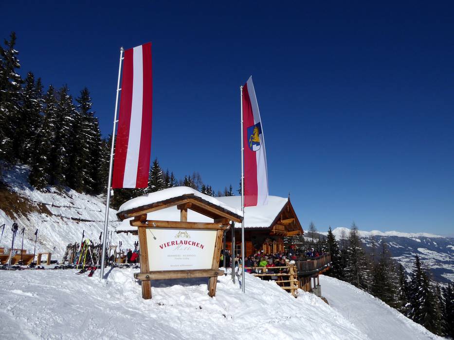 La Vierlauchenhütte est un chalet de ski rustique avec une terrasse ensoleillée et d’excellentes spécialités locales. La vue sur le Pinzgau est à couper le souffle.