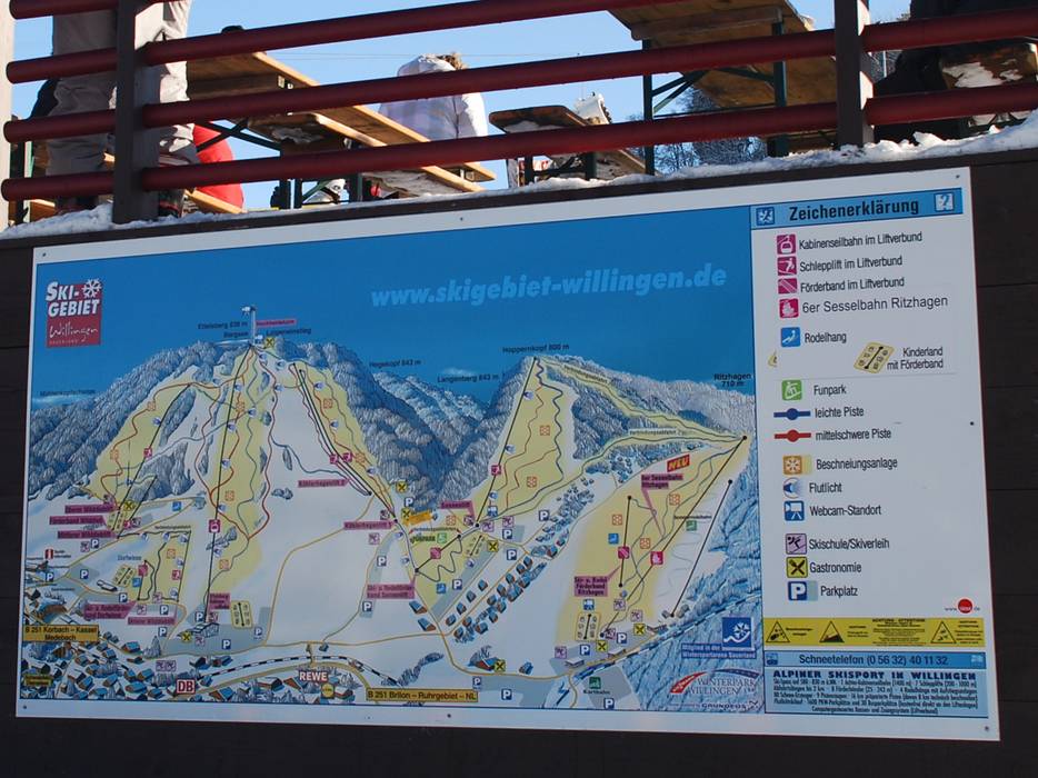 Willingen est situé dans une cuvette, d'où le domaine skiable s'étend sur les pentes des montagnes environnantes Ettelsberg, Hoppernkopf et Ritzhagen, accessibles grâce à une télécabine 8 places, un télésiège 6 places ainsi que plusieurs téléskis. Les pistes faciles et de difficulté